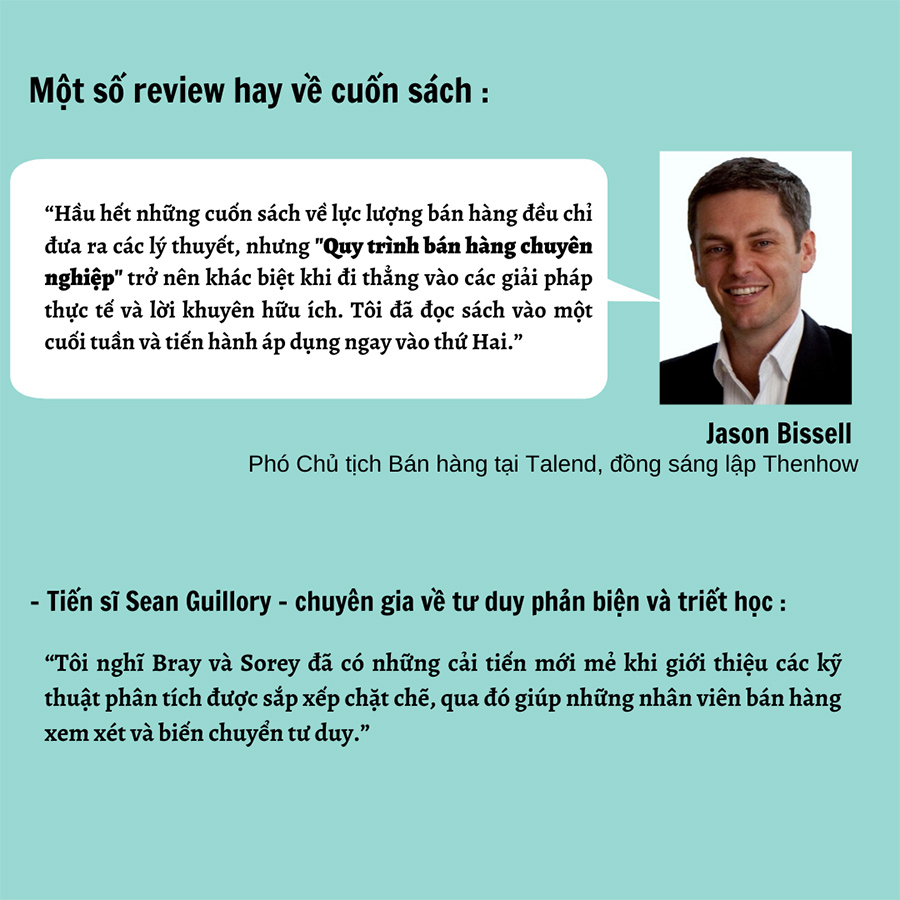 Trong cuốn sách “Quy trình bán hàng chuyên nghiệp” của tác giả Cory Bray và Hilmon Sorey cung cấp phương hướng để những người có trách nhiệm lập được kế hoạch rõ ràng trong việc huấn luyện đội ngũ kinh doanh, xây dựng văn hóa bán hàng trong toàn tổ chức, gia tăng hiệu quả làm việc và không ngừng cải thiện doanh số.
