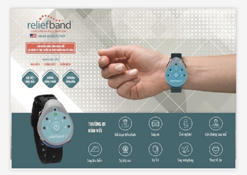 Thiết bị y tế đeo tay giảm nhanh các triệu chứng ĐAU ĐẦU - CHÓNG MẶT - BUỒN NÔN, hỗ trợ điều trị chống SAY TÀU XE - ỐM NGHÉN - TIỀN ĐÌNH mà không cần dùng thuốc.