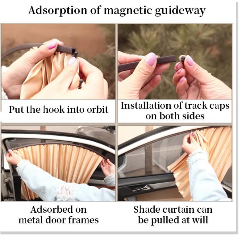 Chỉ cần cắt thanh ray vừa với mép cửa rồi sâu rèm vào ray và đặt lên mép cửa , thanh ray hít nam châm vào cửa là bạn đã có thể sử dụng thật dễ dàng.