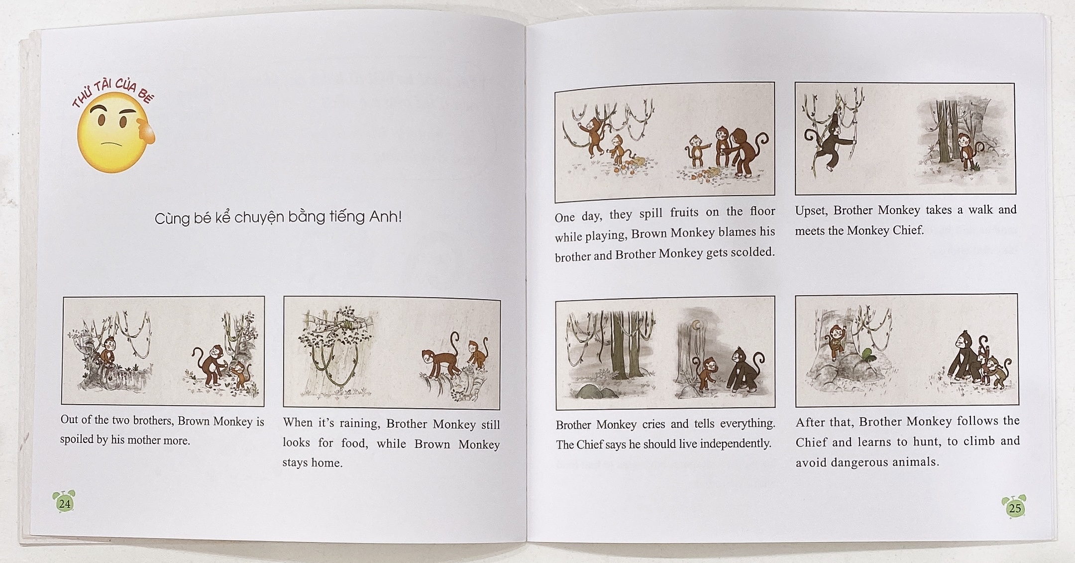 Giữ cho rừng mãi xanh Bộ truyện song ngữ Anh – Việt gồm 3 quyển, độ dày mỗi tập 52 trang với 6 câu chuyện: Pan dũng cảm - Đôi bạn thân - Magpie yêu
