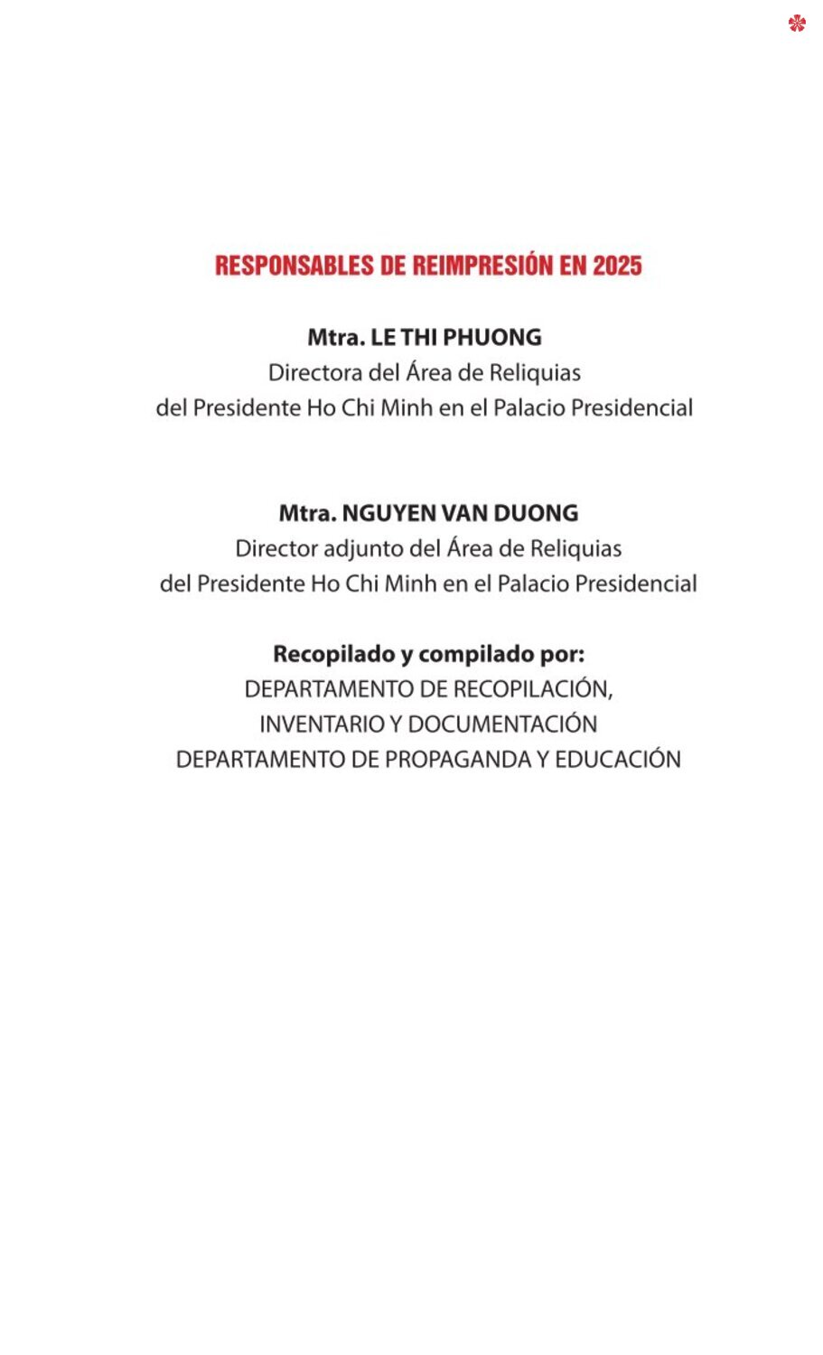 El libro Residencia y lugar de trabajo del presidente Ho Chi Minh en el Palacio Presidencial - Hanoi ofrece a los lectores un recurso valioso que nos ayuda a comprender mejor la vida del amado líder del de la nación vietnamita. El libro recrea de forma realista y lleva al lector a cada pequeño rincón, a cada recuerdo, a cada historia sencilla pero impregnada de significado histórico y humano sobre los lugares asociados al presidente Ho Chi Minh en el Palacio Presidencial como: la Casa 54, la Casa sobre pilotes, la Casa 67, el estanque de peces, el camino de mangos, lentre otros.