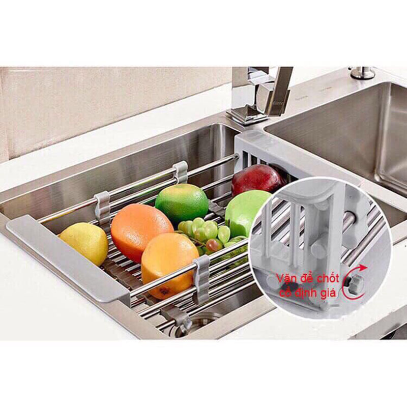 Có thể giãn ra, rút gọn vừa vặn với bất kì bồn rửa chén thông dụng nào Chất liệu nhựa cứng cáp, màu sắc trang nhã Giao màu ngẫu nhiên Kích thước kéo dãn tối
