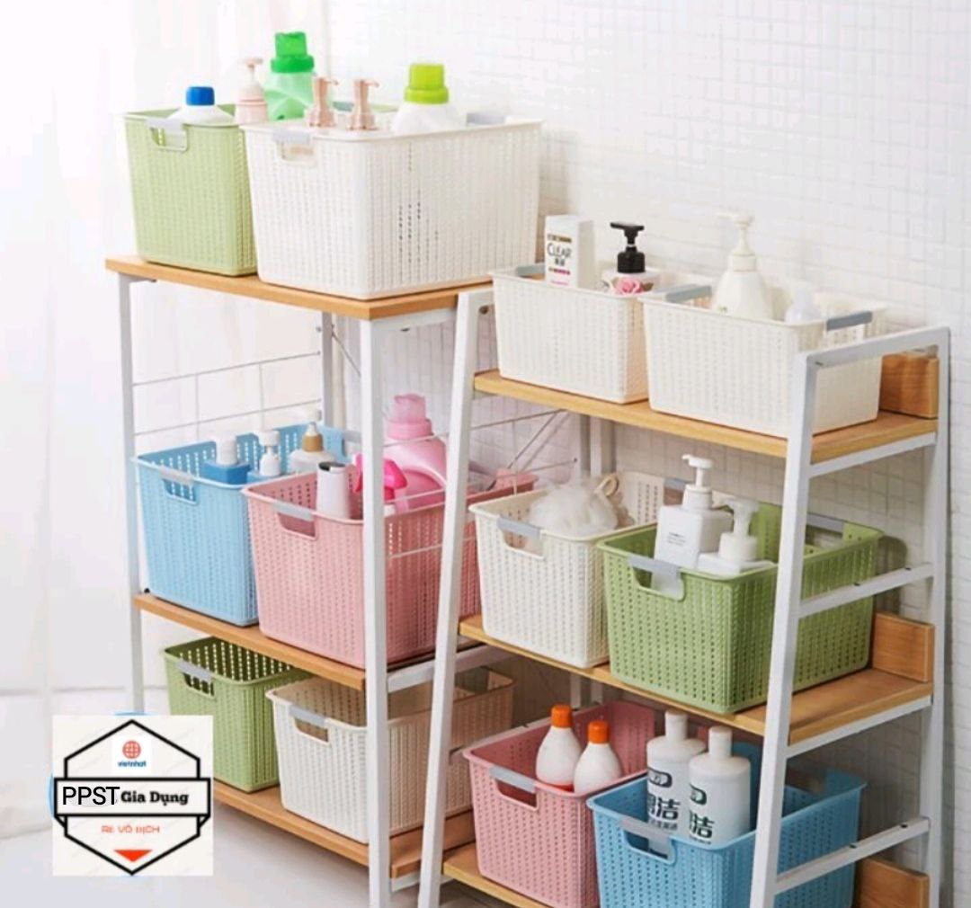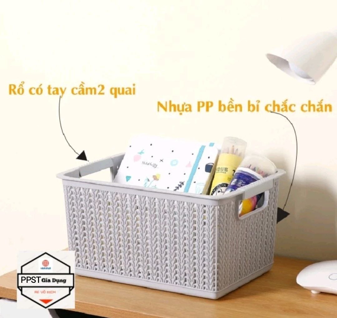 Rổ đan nhựa thiết kế với kiểu dáng bắt mắt, xinh xắn, màu sắc đẹp mắt. Sản phẩm thích hợp sử dụng ở nhiều không gian: nhà bếp, nhà tắm, phòng ngủ, phòng khách…Dùng để đựng và xếp gọn các vật dụng trong gia đình như: quần áo, sách báo, chăn,ô cùng thuận tiện.