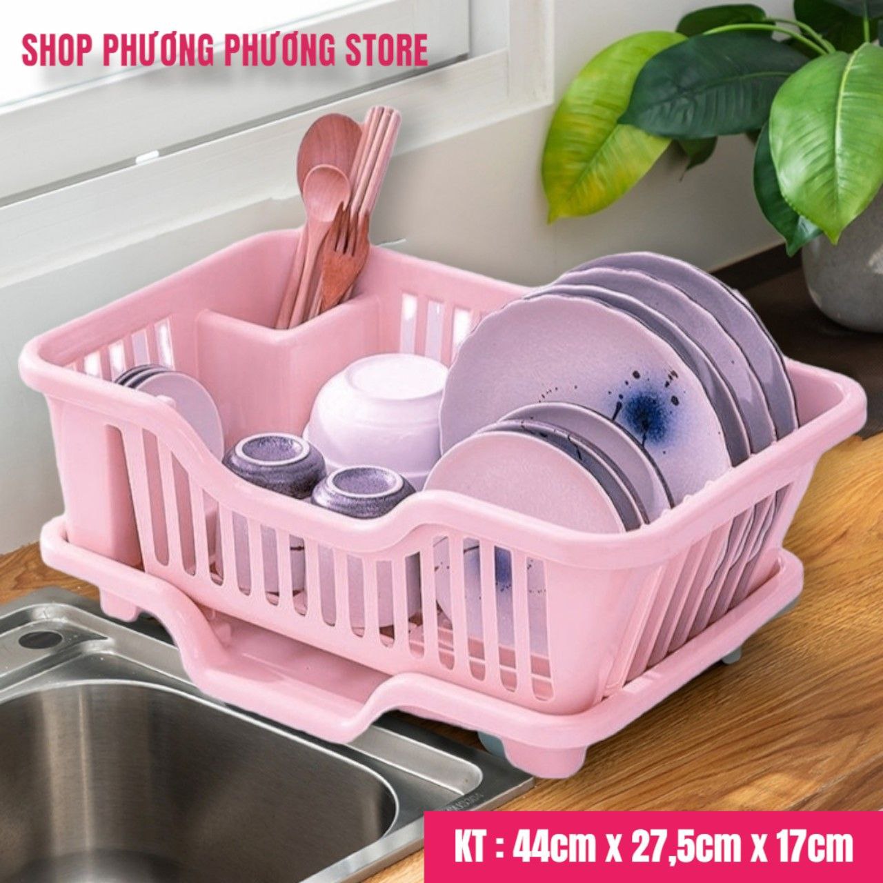 Bộ khay rổ úp chén bát nhựa 45x28x17cm - Khay hứng thoát nước, đựng dĩa, ống cắm dao đũa muỗng
