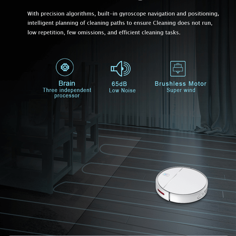 Điều hướng thông minh: Chế độ điều hướng con quay hồi chuyển, nhanh hơn gấp 3 lần so với các robot điều hướng ngẫu nhiên hàng đầu Đường dọn vệ sinh: có bàn chải chính