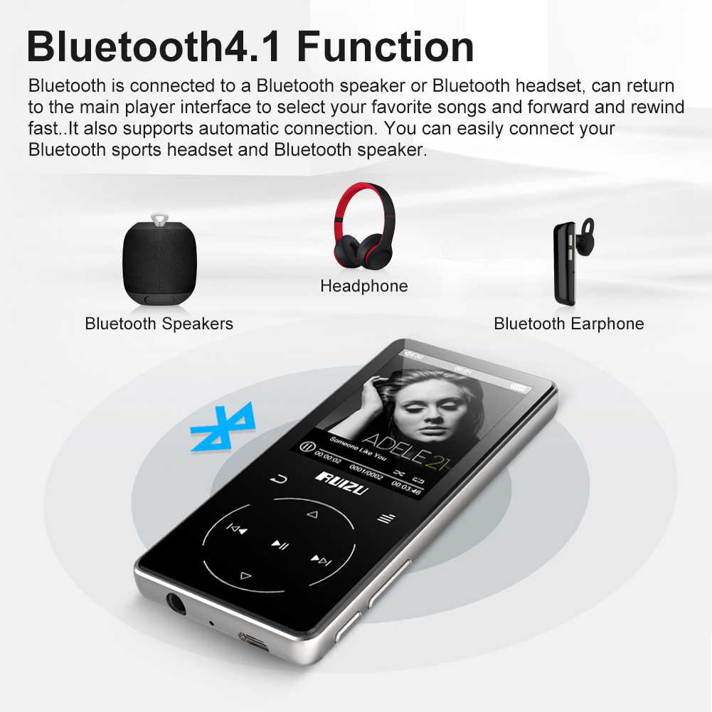 Máy Nghe Nhạc MP3 Màn Hình Cảm Ứng Bluetooth Ruizu D25 Bộ Nhớ Trong 16GB - Hàng Chính Hãng Đặc điểm: BT 5.0 cung cấp cho bạn kết nối ổn định với các thiết bị