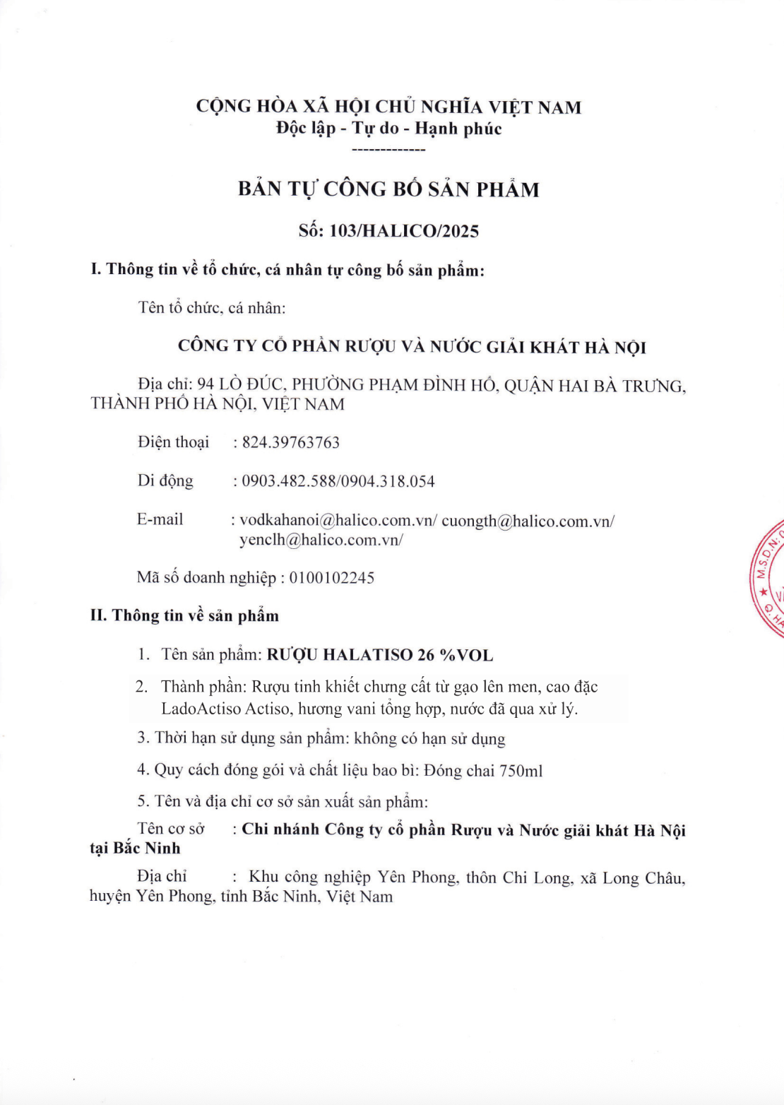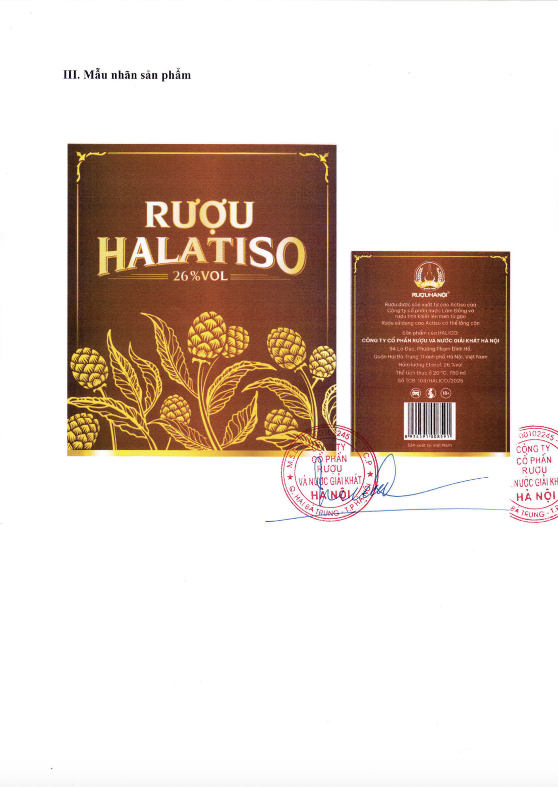 ✨Rượu HALATISO - HALICO nồng độ 26% chai 750ml kèm hộp