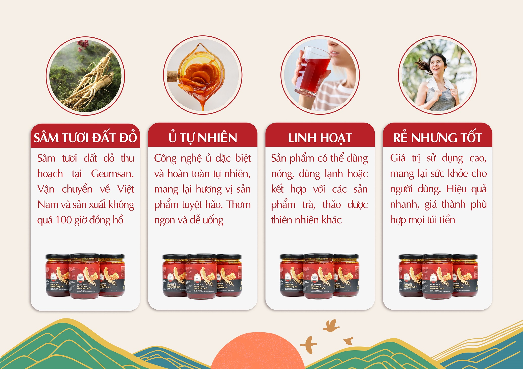 - Sâm Hàn Quốc được trồng tại Geumsan, Chungcheong Hàn Quốc đạt chuẩn 6 năm tuổi. Tổng thời gian từ lúc thu hoạch đến khi vận chuyển về Việt Nam để ra sâm sấy lạnh thành phẩm là không quá 100 giờ đồng hồ.