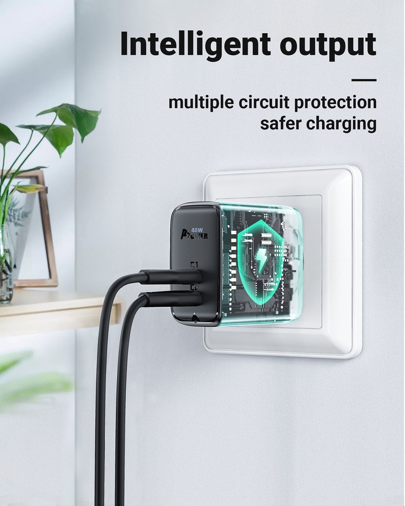 - Đầu ra thông minh, hỗ trợ cho PD20W, cho QC3.0 / QC2.0, cho AFC. cho FCP và các giao thức tính phí khác.