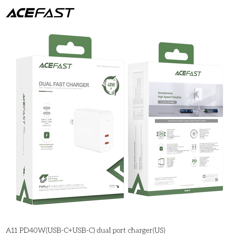 ✨Sạc Acefast PD3.0 40W 2 cổng USB-C (US) - A11 Hàng chính hãng Acefast