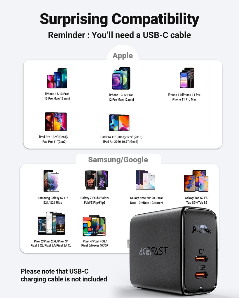 ACEFAST USB-C 2 Port 40W PD Charger! Fast Charge 2 iPhones At Once!