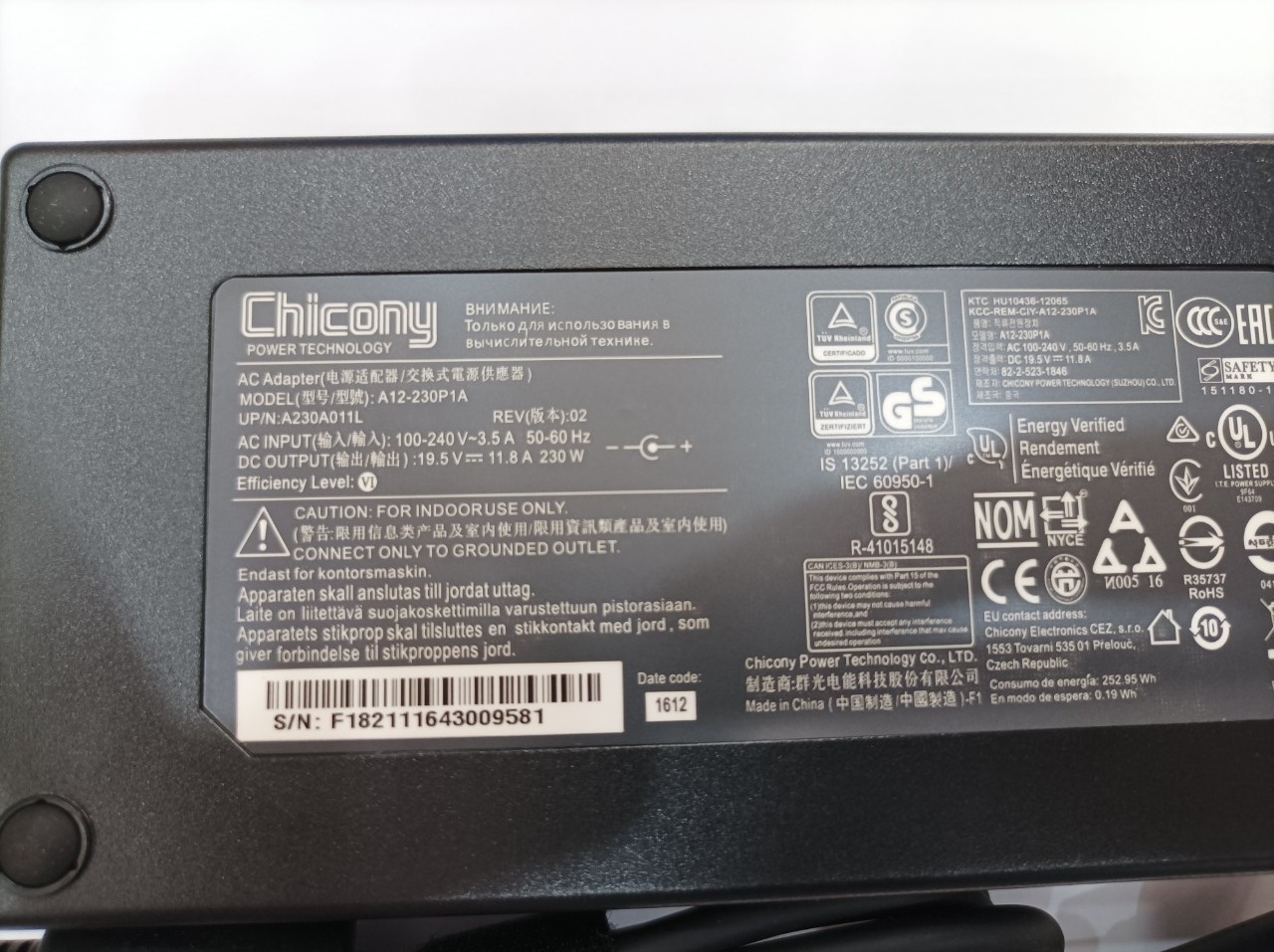 • Điện áp ra (output) 19.5V 11.8A