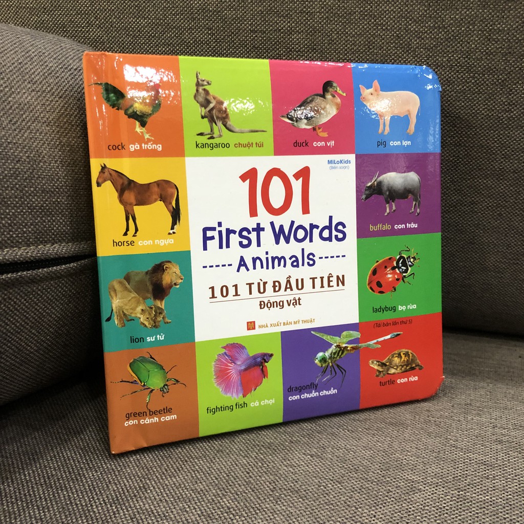 Theo các nhà nghiên cứu khoa học, tuổi càng nhỏ, khả năng tiếp thu kiến thức thông qua hình ảnh của các em càng tốt, có thể bắt đầu ngay từ lứa tuổi mầm non, từ 2 - 7 tuổi. 101 First Words/ 101 từ đầu tiên là những cuốn sách Anh – Việt vô cùng bổ ích dành cho các bé từ 2 đến 7 tuổi bắt đầu tập nói tiếng Anh. Bé sẽ được phát triển vốn từ tiếng Anh thông qua các chủ đề gần gũi như Giao thông, Bảng chữ cái, Các vật dụng trong nhà hay các chủ đề mang tính khám phá như Động vật… Không những thế, việc chọn lựa phương pháp chuyển tải thú vị của cuốn sách đã mở ra cho các em một thế giới hình ảnh sinh động và đầy màu sắc, giúp bé tiếp thu kiến thức và ghi nhớ dễ dàng hơn. Cuốn sách tranh cung cấp những từ vựng Tiếng Anh cơ bản, gần gũi với cuộc sống, cùng hình ảnh minh họa sinh động giúp bé phát triển khả năng ngôn ngữ và bước đầu khám phá thế giới xung quanh. Đặc biệt, sách in bằng chất liệu giấy bền đẹp, bìa bọc mút mềm an toàn cho bé