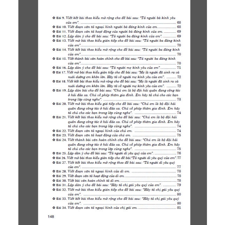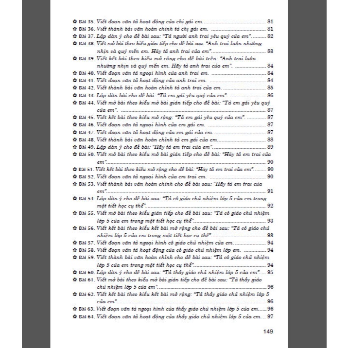 Trong cuốn sách này, tác giả giới thiệu 6 dạng bài làm văn khác nhau để các em luyện tập: