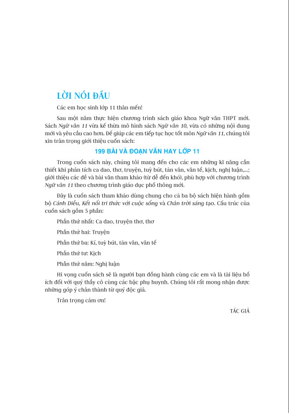 Sau một năm thực hiện chương trình sách giáo khoa Ngữ văn THPT mới. Sách Ngữ văn 11 vừa kế thừa mô hình sách Ngữ văn 10, vừa có những nội dung mới và yêu cầu cao hơn. Để giúp các em tiếp tục học tốt môn Ngữ văn 11, chúng tôi xin trân trọng giới thiệu cuốn sách: