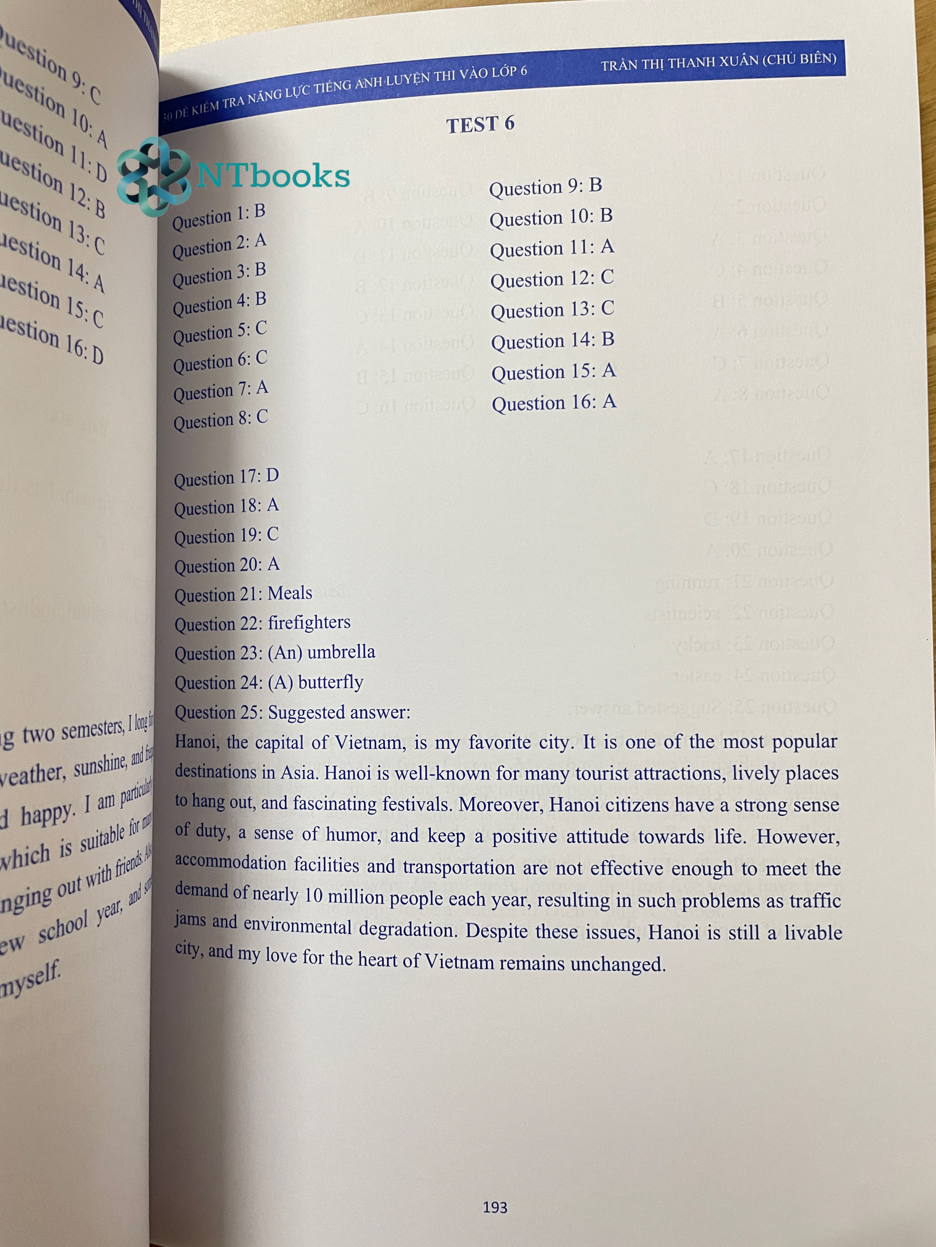 Mua tại TiktokNội dùng gồm có: Sách gồm 30 đề thi thử môn tiếng Anh, mỗi đề gồm 25 câu hỏi với các kiểu bài phong phú và đa dạng kiểm tra kiến thức về ngữ âm, từ vựng, ngữ pháp và bắt đầu làm quen với các bài tập viết ngắn. Phần cuối phần cuối cuốn sách này đã bán cho các đề thi Contents Test 1 Test 2 Test 3 Test 4 Test 5 Test 30 Answer keys Tác giả: Nhiều tác giả Nhà Xuất Bản : NXB Đại học quốc gia Hà Nội Số trang: 219 trang / 1 cuốn Bìa mềm Năm xuất bản : 2020 NTBOOKS CAM KẾT: