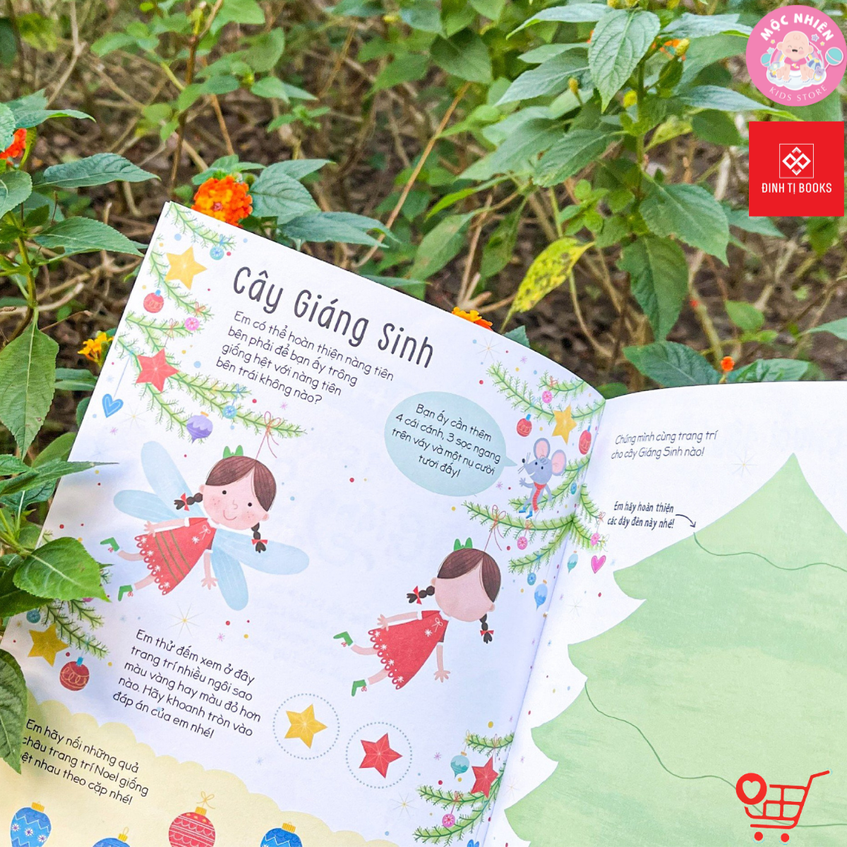 - Cắt những bông tuyết giấy Cuốn sách bao gồm hơn 40 hoạt động sáng tạo độc đáo, có hướng dẫn chi tiết, trực quan, giúp các em vừa phát triển trí tưởng tượng và óc sáng tạo, vừa phát triển năng lực thị giác cũng như khả năng tập trung, kỹ năng vận động và sự phối hợp tay-mắt… giúp các bạn nhỏ rèn luyện IQ, EQ rất hiệu quả. Ngoài ra còn rất nhiều các hoạt động khác như: Giải ô chữ, nối số, vẽ tranh, giải mã mê cung… đang chờ bạn nhỏ khám phá trong cuốn sách này đấy! Hãy cùng thỏa sức sáng tạo để làm nên một mùa Giáng Sinh thật diệu kỳ nhé!