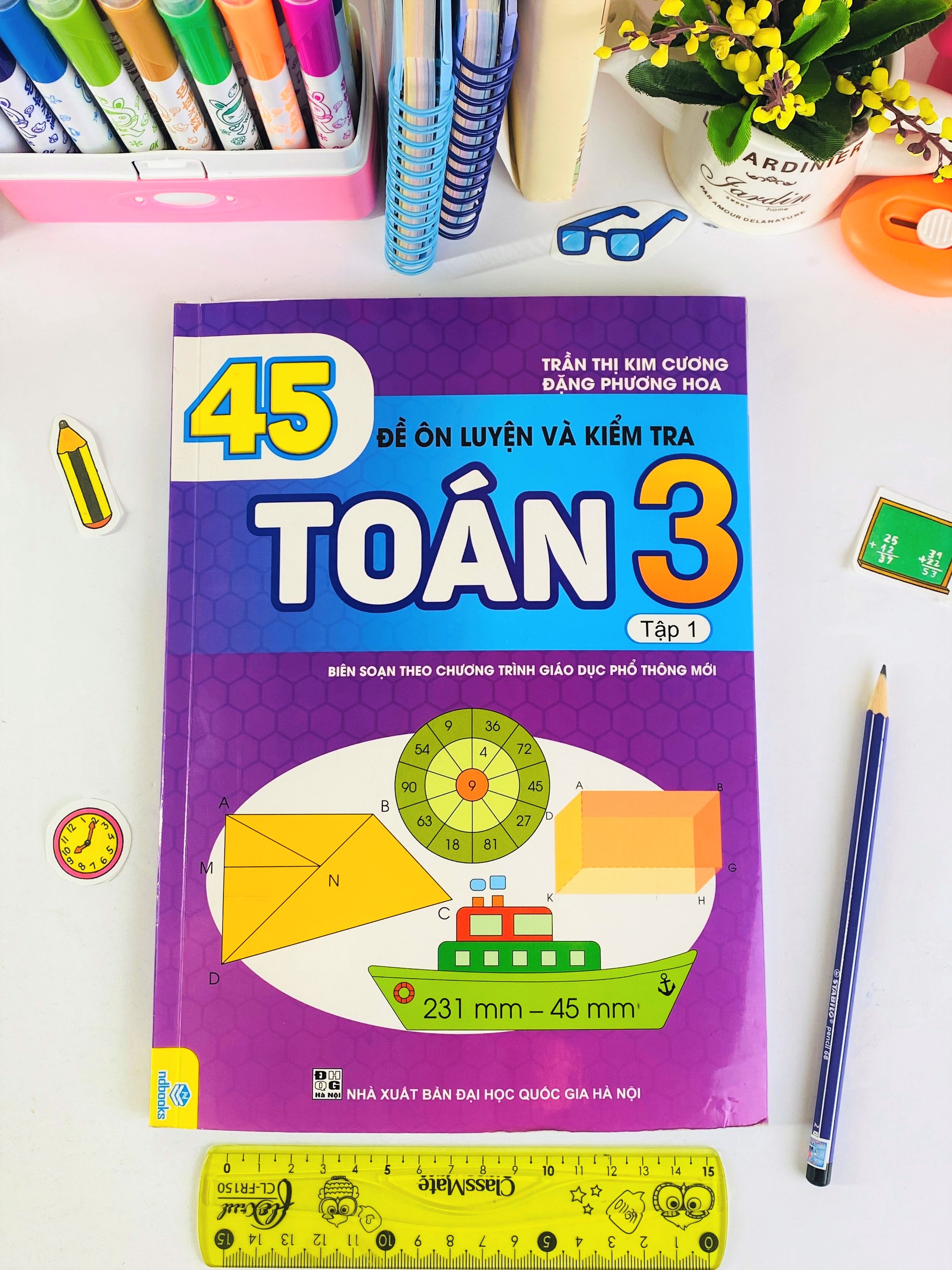 Nhằm giúp các thầy cô giáo và các em học sinh tiểu học có thêm tài liệu kiến thức trong tuần, giữa kì và cuối kì theo chương trình mới, chúng tôi biên soạn bộ sách ' 45 ĐỀ ÔN LUYỆN VÀ KIỂM TRA TOÁN '. Bộ sách gồm 10 quyển, mỗi lớp 2 quyển : Tập 1 và tập 2. Mỗi tuần có 2 đề ôn luyện, còn lại là một số để tự luyện, tự kiểm tra giữa kì và cuối kì. Mỗi đề gồm các bài tập chọn lọc, tiêu biểu với đầy đủ các dạng bài tập trắc nghiệm ( điền khuyết, đúng - sai, chọn đáp án đú) và bài tập tự luận.