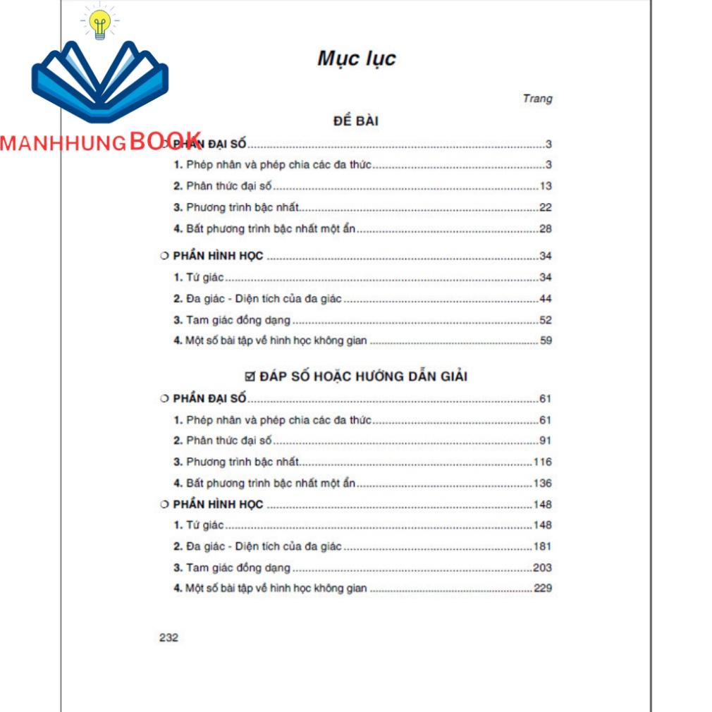 Công ty Học Liệu Sư Phạm giới thiệu: Giới thiệu sách: Nội dung gồm có: Tập 1 Chương I. Số hữu tỉ Chương II. Số thực Chương III. Góc và các đường thẳng song song