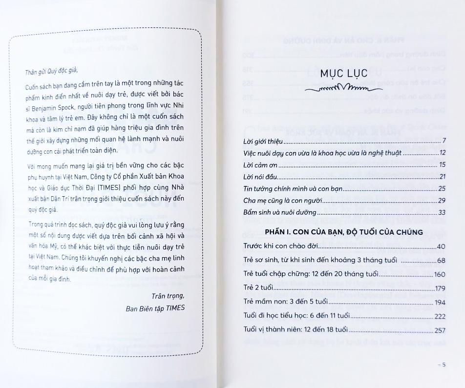 Tất cả những lời khuyên trong bộ sách đã được bác sĩ Spock thử nghiệm theo thời gian, từ các thực hành y tế mới nhất đến những tiến bộ trong chăm sóc trẻ em, cùng với bảng chú giải thuật ngữ y tế hoàn toàn mới. Bộ sách thiết yếu và kinh điển này sẽ giúp tất cả các bậc cha mẹ đối mặt với nhiều thử thách và trách nhiệm của m.ình với sự tự tin và niềm vui mới. Như bác sĩ Spock đã luôn nói: “Hãy tin tưởng vào bản thân. Bạn biết nhiều hơn những gì bạn nghĩ.”