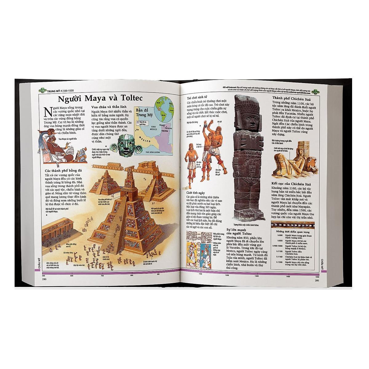 Cuốn sách đã vẽ nên bức tranh rộng lớn tái hiện cuộc sống của các dân tộc trước đây, giới thiệu về các nền văn minh nổi tiếng nhân loại, những nhân vật biến đổi thế giới, những sự kiện thay đổi tiến trình lịch sử… Với hàng nghìn minh họa ấn tượng và các bản đồ chi tiết, bạn đọc sẽ dễ dàng hình dung chủ đề đang được đề cập.