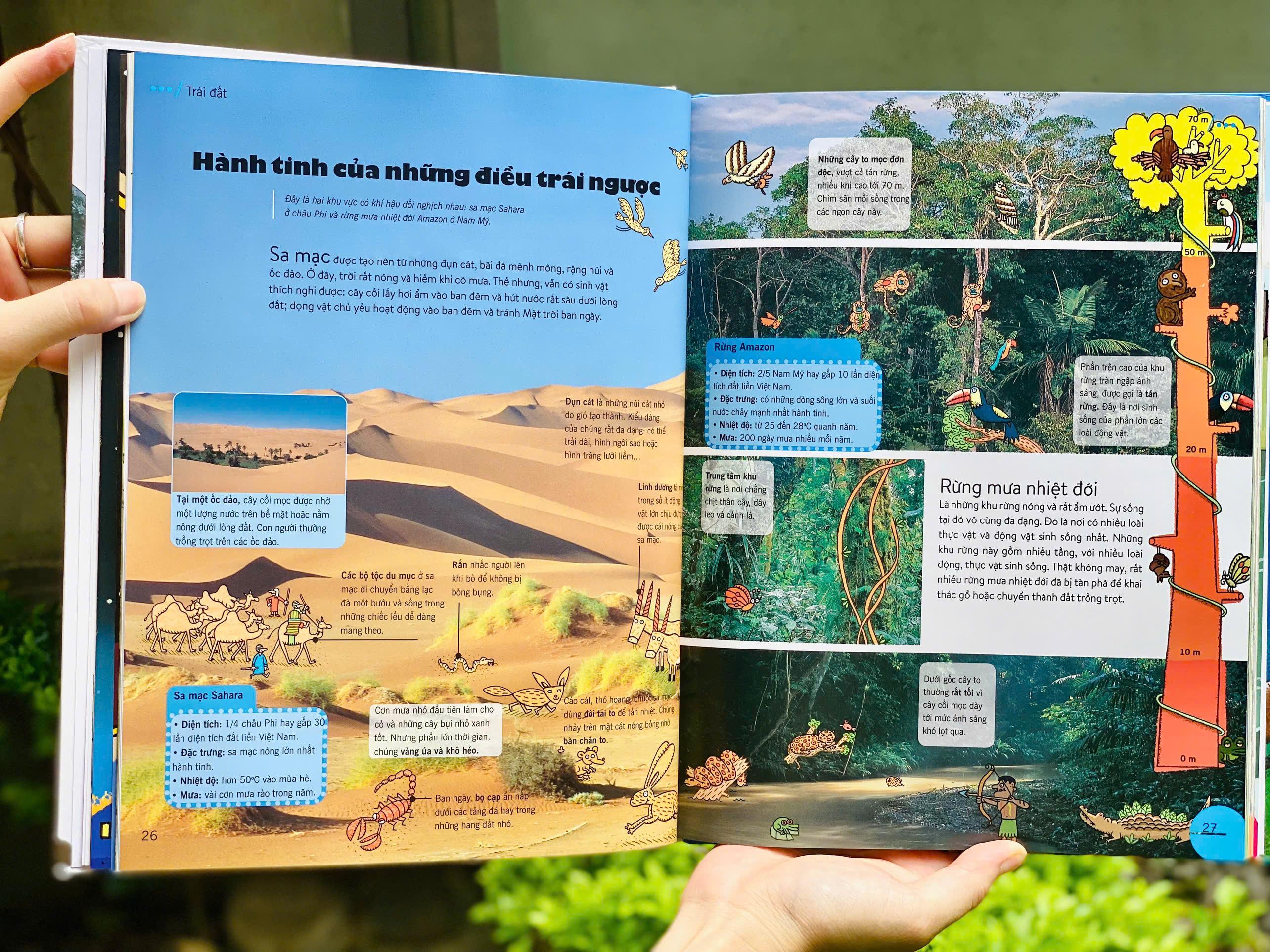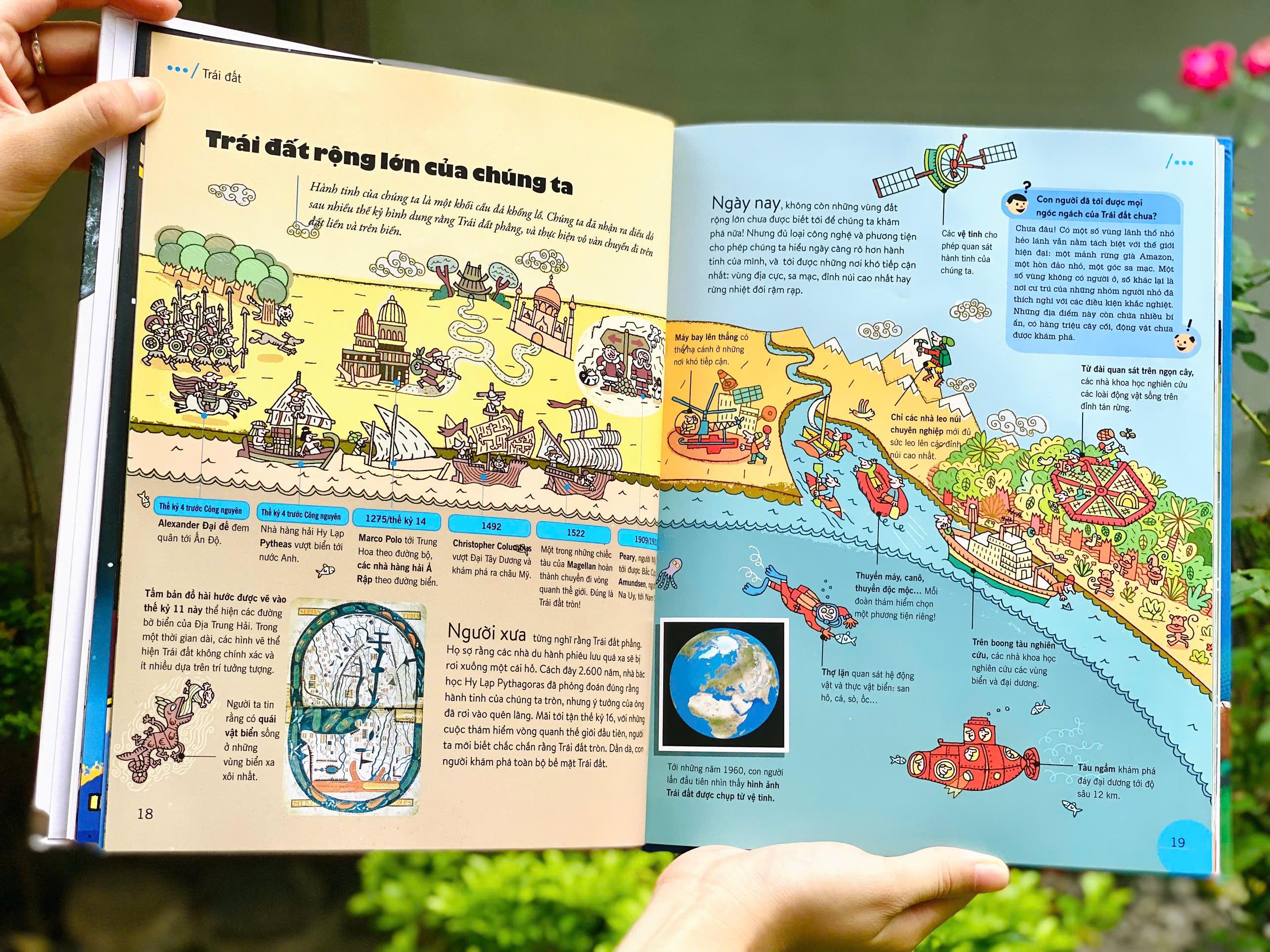 - Khoa học & Công nghệ Minh họa sống động – Thu hút cả những bạn nhỏ hiếu động nhất 184 trang in màu rực rỡ, ngập tràn hình ảnh trực quan giúp trẻ tiếp cận tri thức một cách tự nhiên, như đang bước vào một bộ phim tài liệu bằng tranh. Kiến thức nhập môn của nhiều môn học – trong một cuốn sách duy nhất