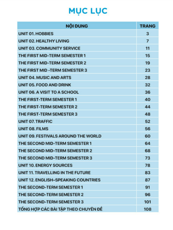 Phần thứ nhất gồm các bài tập ôn luyện được biên soạn theo các chủ đề dựa trên chương trình sách giáo khoa mới nhất. Phần thứ hai là phần luyện để học sinh giỏi của các trường. Bài tập dành cho mỗi đơn vị bài học bao gồm hơn 50 câu với đủ các dạng bài, ngữ âm, từ vựng và ngữ pháp.