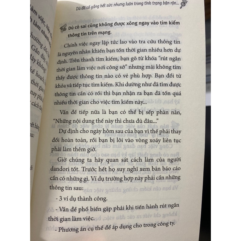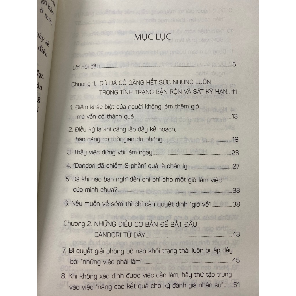 Ở Nhật, Dandori đã trở thành một từ phổ biến, người ta thường nghe “người này Dandori tốt” “người kia Dandori kém”. Vậy Dandori là gì? Có thể hiểu Dandori là năng lực chuẩn bị và sắp xếp công việc. Người có khả năng Dandori tốt không phải là người xử lý công việc nhanh, có thao tác khéo léo mà là người biết mục đích thực sự của việc mình sẽ làm và để đạt được mục đích đó phải lập kế hoạch chi tiết cũng theo nhiều phương án cụ thể, để dù có xảy ra bất cứ tình huống nào mục tiêu vẫn được thực hiện.