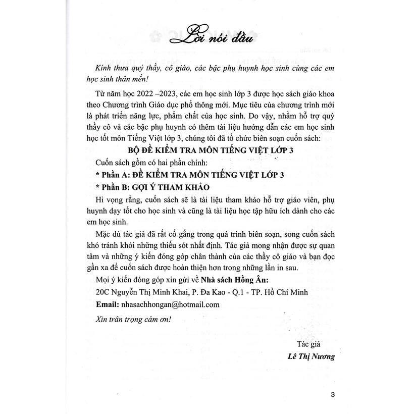 Từ năm học 2022 – 2023, các em học sinh lớp 3 được học sách giáo khoa theo Chương trình Giáo dục phổ thông mới. Mục tiêu của chương trình mới là phát triển năng lực, phẩm chất của học sinh. Do vậy, nhằm hỗ trợ quý thầy cô và các bậc phụ huynh có thêm tài liệu hướng dẫn các em học sinh học tốt môn Tiếng Việt lớp 3, chúng tôi đã tổ chức biên soạn cuốn sách: Bộ Đề Kiểm Tra Môn Tiếng Việt Lớp 3 (Dùng Kèm SGK Chân Trời Sáng Tạo)