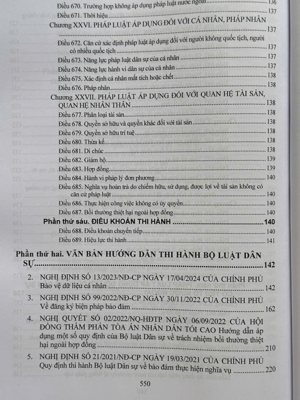 Phần thứ hai. Văn bản hướng dẫn thi hành Bộ luật Dân sự 2015