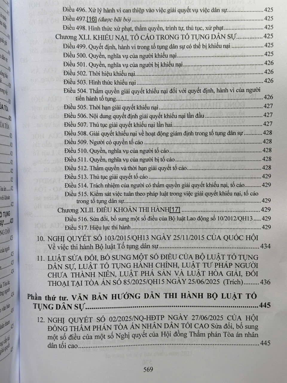 Sách Bộ Luật Dân Sự năm 2015, Bộ Luật Tố Tụng Dân Sự năm 2015 sửa đổi, bổ sung năm 2025 và Các Văn Bản Hướng Dẫn Thi Hành