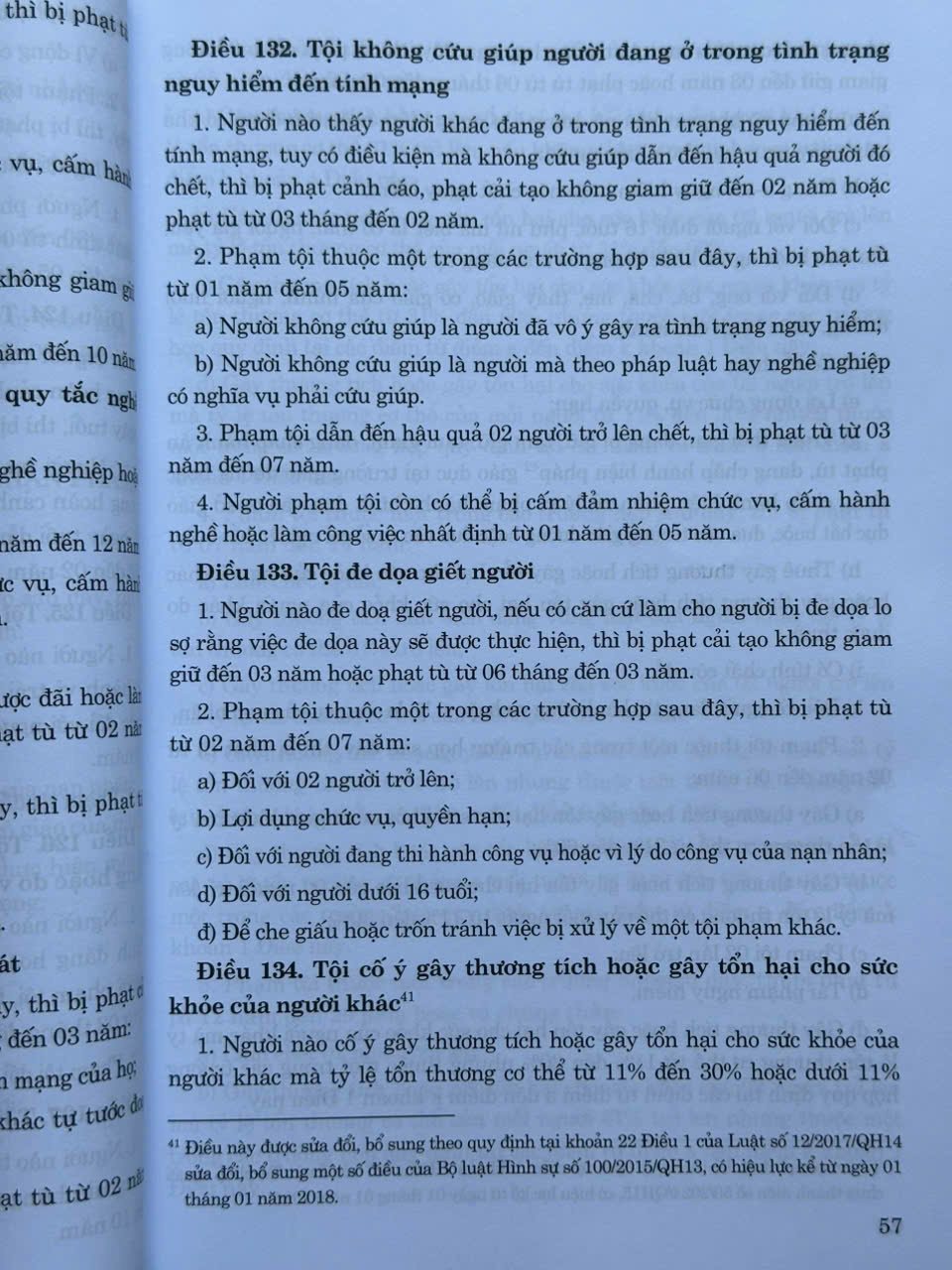 - Luật số 12/2017/QH14 ngày 20 tháng 6 năm 2017 của Quốc hội sửa đổi, bổ sung một số điều của Bộ luật Hình sự số 100/2015/QH13, có hiệu lực kể từ ngày 01 tháng 01 năm 2018;