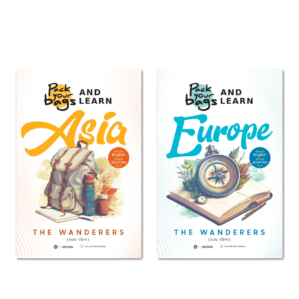 Bộ sách Tiếng Anh Du lịch từ Á sang Âu, được biên soạn bởi nhóm tác giả The Wanderers và phát hành vào năm 2023 bởi Zenbooks và NXB Đà Nẵng, là một tập hợp hai cuốn sách độc đáo – Pack Your Bags And Learn Asia và Pack Your Bags And Learn Europe – giúp người học tiếng Anh vượt qua gánh nặng học tập nhờ hành trình khám phá văn hóa từ châu Á đến châu Âu. Với tổng cộng 392 trang, bộ sách mang đến 90 bài đọc hấp dẫn về 54 quốc gia, biến việc học ngoại ngữ thành một chuyến du ngoạn thú vị, phù hợp cho những ai yêu thích xê dịch và muốn nâng cao kỹ năng tiếng Anh một cách tự nhiên.
