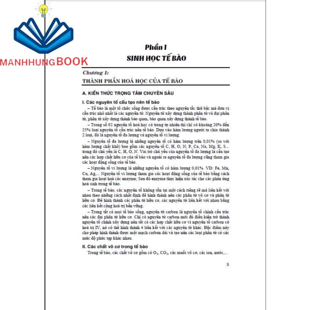 Phần I là kiến thức về sinh học Tế bào được trình bày theo 5 chương; Phần