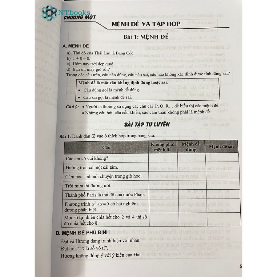 1. Nội dung sách Tự học Toán học lớp 10: Tập 1: - Chương 1: Mệnh đề và tập hợp (5 chủ đề) - Chương 2: Bất phương trình - Hệ bất phương trình (4