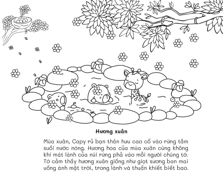 "Capybara - Funny Time - Thời gian vui vẻ" là một cuốn sách tô màu vô cùng ấn tượng và đáng yêu. Với những hình ảnh tinh tế và dịu dàng, cuốn sách mang đến một trải nghiệm chữa lành và lan tỏa tình yêu thương cho người đọc.