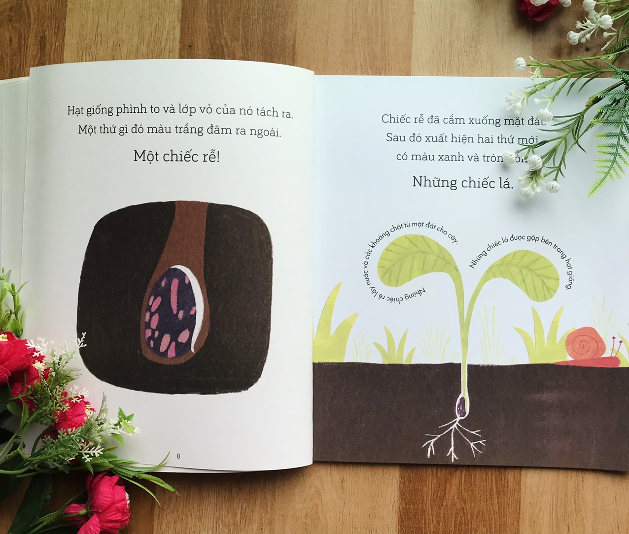 Câu Chuyện Khoa Học (Bộ 4 quyển) ~~~ Bộ sách sẽ bổ sung kiến thức cho các bé về 1. Sự phát triển, sinh sôi qua câu chuyện Sâu Bướm Và Hạt Đậu Một chú Sâu Bướm nở ra từ một quả trứng màu trắng bé xíu và nhai nhồm nhoàm những chiếc lá ở ngôi nhà cây đậu của mình. Nó lớn dần lên - nhưng sau đó nó sẽ biến thành cái gì nhỉ? Cuốn sách tranh xinh đẹp này là một lời giới thiệu về những vòng đời và cách vạn vật sinh trưởng 2. Lực đẩy, lực kéo qua câu chuyện Chim Xây Tổ Hôm nay bạn Chim dậy sớm - bạn ấy sẽ xây tổ. Bạn ấy kéo và đẩy những cành cây để đan thành một cái tổ tồi chời đợ có đoán trước được mục đích của bạn ấy không? Cuốn sách tranh tuyệt vời này là một lời giới thiệu hoàn hảo về các loại lực và cách chúng ta sử dụng lực để di chuyển mọi vật 3. Các mùa trong năm qua câu chuyện Một Năm Bận Rộn Của Các Bạn Sóc Mùa đông đến rồi. Lạnh thật! Các bạn Sóc đang đào những quả sồi để ăn. Nhưng các bạn ấy sẽ ăn gì khi hết mất những quả sồi vào mùa xuân nhỉ?. Cuốn sách tuyệt vời này là sự giới thiệu hoàn hảo về các mùa và sự thay đổi của thời tiết trong năm 4. Ánh sáng và bóng tối qua câu chuyện Bạn Cáo Trong Đêm Bạn Cáo đang đói bụng. Cáo chờ đợi tới khi trời tối và đi kiếm thức ăn, dò tìm đường nhờ ánh trăng và đèn đường. Cuốn sách tranh dễ thương này là lời giới thiệu hoàn hoả về ánh sáng và bóng tối khi có sự dẫn dắt câu chuyện của bạn Cáo nhỏ. Các bé có thể tìm hiểu về cuộc sống sinh hoạt ban ngày hay khi về đêm của bạn Cáo và những con vật xung quanh từ đó hiểu thêm về tập quán sinh hoạt của các bạn ấy Mỗi câu chuyện bé sẽ được đồng hành với một bạn động vật đáng yêu, tham gia vào cuộc sống, sự lớn lên và trưởng thành của các bạn ấy, cùng các bạn xây tổ, cũng các bạn đi kiếm ăn, cùng các bạn ấy lớn lê Qua mỗi câu chuyện bé như là người đồng hành thú vị cùng các bạn động vật (Cáo, Chim, Sóc, Sâu Bướm), với ngôn từ nhẹ nhàng, tỉ mỉ, được trau chuốt, cuốn sách chắc chắn sẽ trở thành người bạn đồng hành trong quá trình phát triển nhận thức của các bé