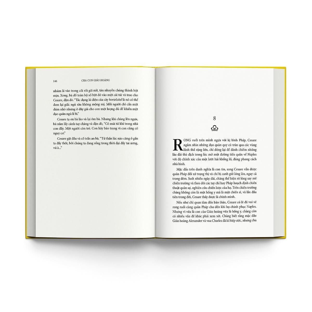 Cha con Giáo hoànglà một thiên sử thi xuất sắc, pha trộn màu sắc lãng mạn với chất cuồng điên của lòng tham quyền lực, những mưu ma chước quỷ, tội lỗi và trừng phạt… vượt xa khỏi trí tưởng tượng của người thường. Cuốn sách mang người đọc du hành đến một không gian, thời gian hoàn toàn khác, nơi Giáo hội nắm quyền thống trị tối cao, nơi lửa tham vọng ngùn ngụt cháy dưới tấm áo choàng đỏ rực. Đây là câu chuyện về mối quan hệ cha con kì lạ: gắn bó với nhau bởi huyết thống, lòng tận tụy và những ý đồ đen tối; về một gia đình khét tiếng mà công trạng và tội lỗi còn mãi lưu truyền hậu thế: gia đình Borgia.