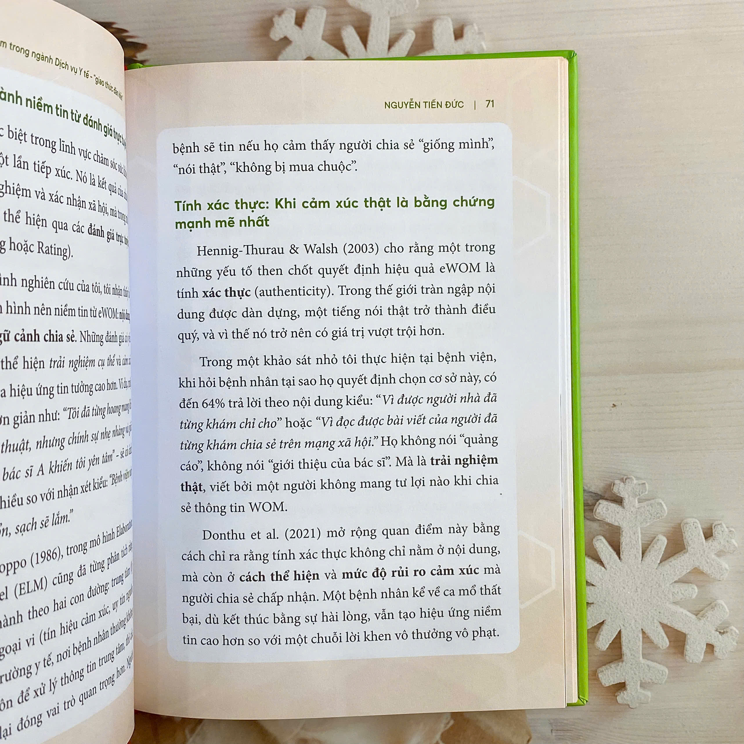 Cuốn sách lý giải rõ vì sao trong ngành y tế hiện đại, truyền miệng điện tử (eWOM) – những đánh giá, chia sẻ trên mạng – lại có ảnh hưởng mạnh mẽ đến hành vi người bệnh đến vậy. Từ đó, tác giả đưa ra nhiều chiến lược thiết thực giúp bệnh viện không chỉ cung cấp dịch vụ tốt, mà còn xây dựng được một hệ sinh thái niềm tin, nơi người bệnh sẵn sàng kể lại hành trình chữa bệnh của mình bằng sự tự nguyện và chân thành.