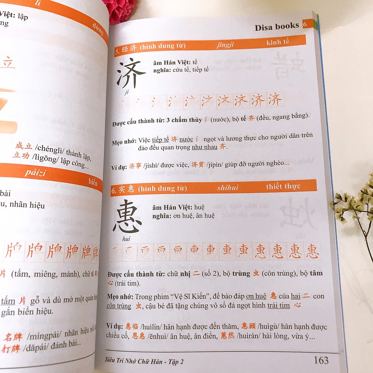 1. Siêu trí nhớ chữ Hán tập 03 (In màu, có Audio nghe) Nội dung sách: Giúp bạn dễ dàng nhớ ngay 1000 chữ Hán chỉ sau 2 tháng thông qua mẹo nhớ và hình ảnh dễ hiểu. Tác giả: Diệu Hồ – Phạm Thành Luân Số trang: 267 Năm xuất bản: 2019 Nhà Xuất Bản: Đà Nẵng Cách nhớ chữ Trung Quốc (chữ Hán) a. Nhớ chữ Hán bằng các bộ thủ Bộ thủ chính là cách nhớ chữ Hán hiệu quả nhất, mỗi bộ thủ trong tiếng Hán lại biểu hiện một hiện tượng sự vật riêng. Nhớ được các bộ thủ đó chính là đã nhớ cách viết tiếng Trung như thế nào. Và việc còn lại chính là ghép các bộ thủ đó với nhau để tạo nên được một chữ hoàn chỉnh. vd: chữ 安 Ở trên là bộ 宀 miên => mái nhà mái che, Ở dưới là bộ女 nữ => nữ giới, con gái, đàn bà. Người phụ nữ ở dưới trong nhà thì rất “an” toàn. Ví dụ: 安全 (Ānquán) – An Toàn. Mẹo nhỏ cho những người mới học viết tiếng Trung có thể nhớ đó là dùng các mảnh giấy nhớ, ghi lại những bộ thủ hay những từ mới bằng việc tập viết tiếng Trung. Để những mảnh giấy nhớ đó ở những nơi dễ thấy. Việc nhìn liên tục đó sẽ giúp bạn vừa có thể nhớ chữ vừa có thể nhớ từ. b. Cách nhớ chữ Hán qua thơ Các từ chữ Hán được học bằng cách gieo vần nhịp để người học nhớ chữ Hán dễ hơn như: “Chim chích mà đậu cành tre Thập trên tứ dưới nhất đè chữ tâm” (Chữ Đức) Hay: “Tai nghe miệng nói đít làm vua”. (Chữ Thánh) Nhớ chữ Hán bằng cách vẽ lại những từ đấy. Nhớ các nét, mô phỏng lại và vẽ, đây là một trong những cách rất tốt để nhớ chữ Hán Chữ Hán có hai cách viết là giản thể và phồn thể. Đa phần các giáo trình tiếng Trung đều là chữ giản thể do đó rất nhiều trường hợp đã gặp lúng túng khi tiếp xúc với chữ phồn thể. Nếu để ý thì cách chữ phồn thể có cách viết chỉ khác chữ giản thể một chút. Trong quá trình học, đừng ngần ngại mà nhờ giáo viên chỉ hướng dẫn cách viết chữ phồn thể (viết tiếng trung) nếu công việc của bạn phải tiếp xúc với kiểu chữ này.