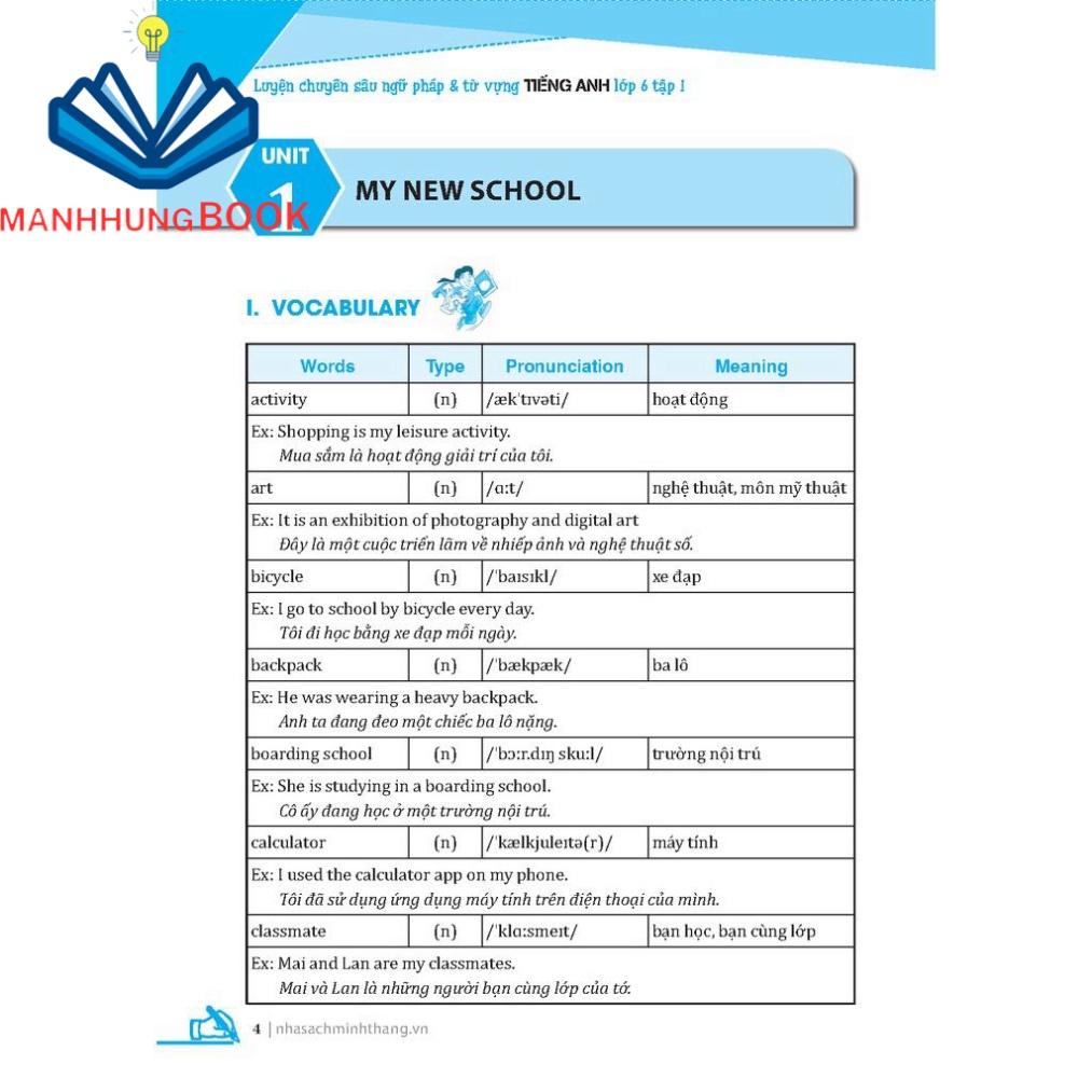 Công ty Học Liệu Sư Phạm giới thiệu: 1.Luyện chuyên sâu ngữ pháp và từ vựng tiếng anh lớp 6 tập 1
