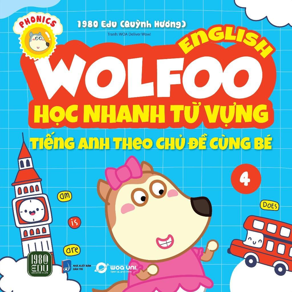 - Combo sách gồm 6 cuốn sau: 1. Wolfoo English – Học nhanh từ vựng tiếng Anh theo chủ đề cùng bé 12. Wolfoo English – Học nhanh từ vựng tiếng Anh theo chủ đề cùng bé 2 3. Wolfoo English – Học nhanh từ vựng tiếng Anh theo chủ đề cùng bé 34. Wolfoo English – Học nhanh từ vựng tiếng Anh theo chủ đề cùng bé 45. Wolfoo English – Học nhanh từ vựng tiếng Anh theo chủ đề cùng bé 56. Wolfoo English – Học nhanh từ vựng tiếng Anh theo chủ đề cùng bé 6- Nội dung bộ sách: Ngày nay, việc để trẻ tiếp cận sớm với tiếng Anh đã dần trở thành một kỹ năng cần thiết của các công dân toàn cầu. Trẻ học tiếng Anh sớm sẽ có nhiều hơn các cơ hội khám phá và học tập trong tương lai. Nhưng làm thế nào để dạy con tiếng Anh tại nhà vừa đơn giản vừa thu hút thì đó lại là mối băn khoăn chung của các bậc cha mẹ.Bộ sách “Wolfoo English - Học nhanh từ vựng tiếng Anh theo chủ đề cùng bé” sẽ giúp các bậc phụ huynh giúp con học và làm quen với các chủ đề tiếng anh mỗi ngày. Thông qua các câu chuyện ngắn theo từng chủ điểm như số đếm, hình học, thời tiết, khí hậu,… Trẻ sẽ dễ dàng học và ghi nhớ sâu hơn từ vựng, mẫu câu giao tiếp đơn giản. Kết hợp với những hoạt động củng cố như quan sát, ghép nối, tô màu và dán nhãn trẻ sẽ thích thú hơn trong việc học và chơi cùng mỗi ngày với sách. Bộ sách không những giúp trẻ học nhanh nhớ lâu từ vựng mà còn kích thích trí tưởng tượng, khả năng tư duy duy, vận dụng ngôn ngữ linh hoạt và khơi gợi tình yêu khám phá, học tập ngay từ sớm của các thiên tài nhí.Hy vọng rằng bộ sách sẽ giúp cha mẹ và các con có thêm nhiều phút giây vui vẻ và bổ ích bên nhau mỗi ngày.