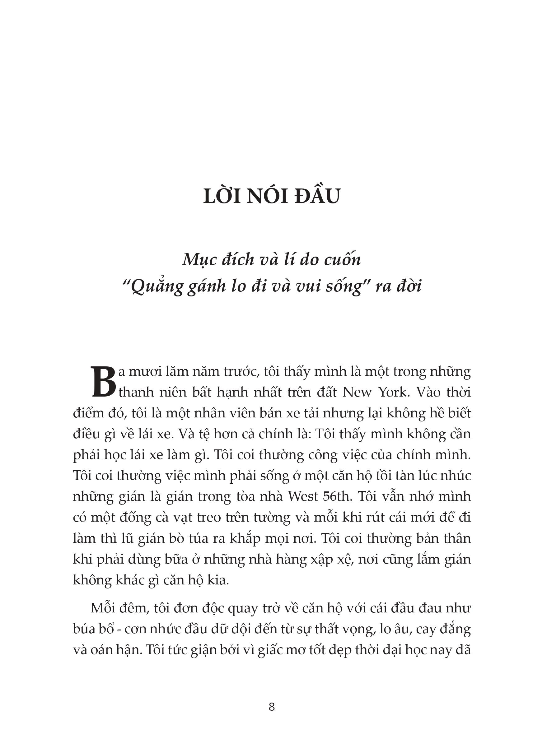 - QUẲNG GÁNH LO ĐI & VUI SỐNG Cuốn sách bao gồm 10 phần khác nhau, với rất nhiều những kinh nghiệm và các lời khuyên từ tác giả cũng như những người đi trước, giúp bạn có thể nhận thức được những điều đúng đắn nhất. Chi tiết Phần 1. Những sự thật bạn cần biết về lo âu Phần 2. Những kĩ thuật cơ bản để phân tích tình trạng lo âu Phần 3. Cách để giũ ỏ âu lo trước khi nó phá huỷ con người Phần 4. 7 cách vun đắp mảnh đất tinh thần để bạn trở nên vui vẻ và hạnh phúc hơn mỗi ngày Phần 5. Nguyên tắc vàng để xoá bỏ lo âu Phần 6. Cách chống lại lo âu khi bị chỉ trích Phần 7. Mệt mỏi dần tan biến - Tinh thần lên đỉnh cao Phần 8. Tìm việc đúng ý gặt hái thành công Phần 9. Cách giảm bớt nỗ lo tài chính Phần 10. Cách để chiến đấu với lo lắng MỘT SỐ HÌNH ẢNH NỘI DUNG THAM KHẢO CAM KẾT