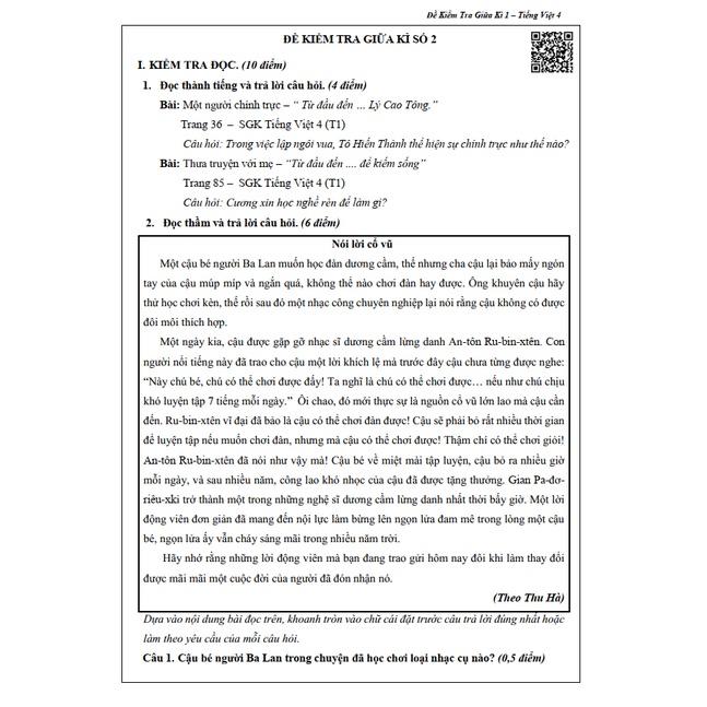 - Đề kiểm tra cả năm của lớp 4 gồm cả 2 kì