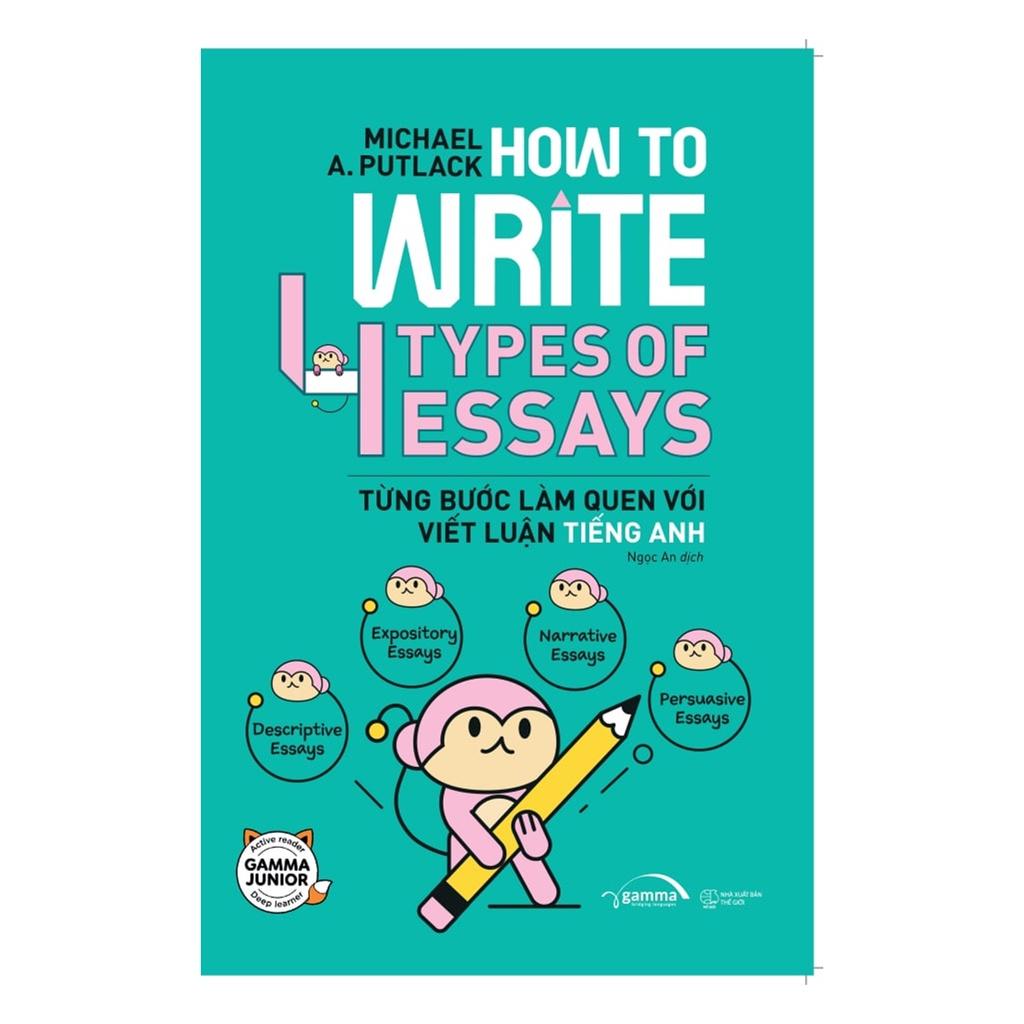 How to Write 4 Types of Essays – Từng bước làm quen với viết luận tiếng Anh sẽ giúp người học làm quen và từng bước chinh phục kĩ năng quan trọng này. Cuốn sách tập trung giới thiệu 4 dạng bài luận tiếng Anh phổ biến nhất, đó là: