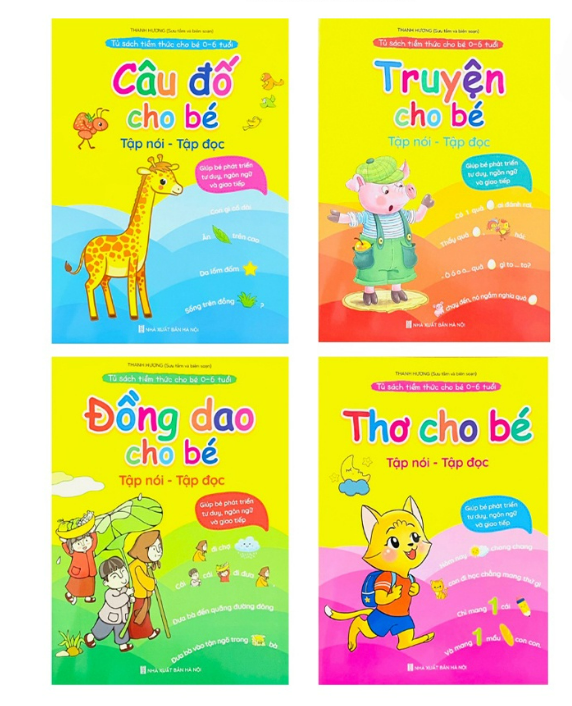 Tủ sách Tiềm thức cho bé từ 0-6 tuổi. Trọn bộ gồm 4 quyển: Đồng dao - Thơ - Truyện - Câu đố cho bé Tập nói, Tập đọc – kèm File đọc quét mã QR ngay trên từng quyển.