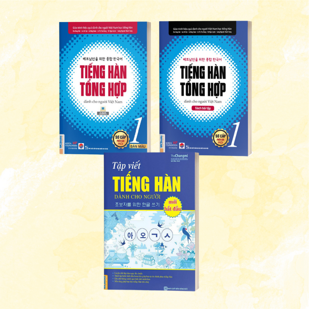 Combo “ Combo Tiếng Hàn Tổng Hợp Sơ Cấp 1 (Giáo Trình + Sách Bài tập) Và Vở Tập Viết Tiếng Hàn” là bộ sách học tiếng hàn cơ bản dành cho người mới bắt