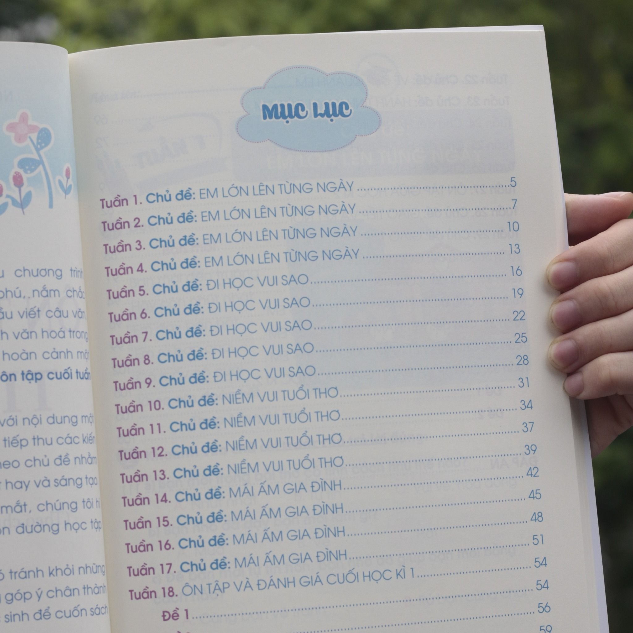 Mỗi phiếu trong cuốn sách sẽ tương ứng với nội dung một tuần học trên lớp của các em. Các em sẽ được tiếp thu các kiến thức về từ, câu, dấu câu... và viết đoạn văn theo chủ đề nhằm rèn luyện kĩ năng đọc, viết, từ , từ viết đúng đến viết hay và sáng tạo.