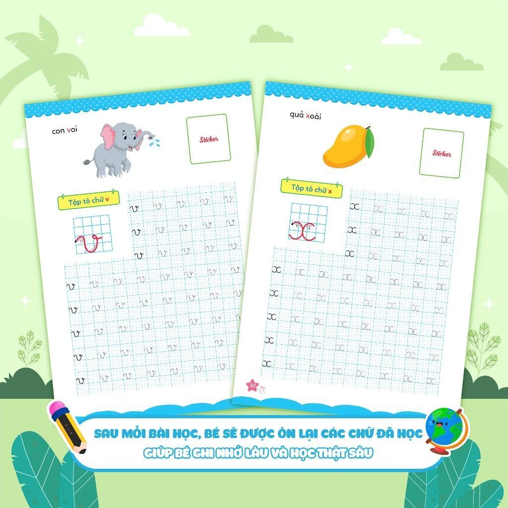 Cùng khủng long học nét cơ bản quyển 3 (chữ cái đầu tiên) - Tặng kèm Sticker bé trai