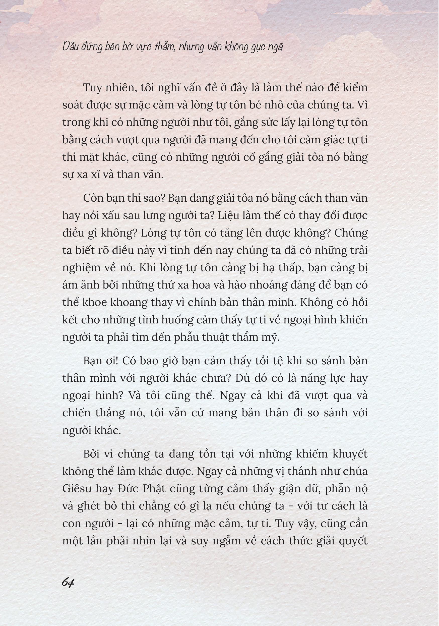 "Dẫu Đứng Bên Bờ Vực Thẳm, Nhưng Vẫn Không Gục Ngã" là một tác phẩm đầy cảm hứng, khám phá hành trình vượt qua khổ đau, thử thách, và cả những giới hạn của chính mình. Tác giả mang đến cho người đọc những câu chuyện sâu sắc, những lời khích lệ mạnh mẽ, giúp ta nhận ra rằng, dù có rơi vào những hoàn cảnh khó khăn nhất, chỉ cần kiên trì và có niềm tin, chúng ta vẫn có thể vươn lên và thay đổi cuộc đời.